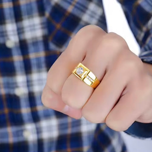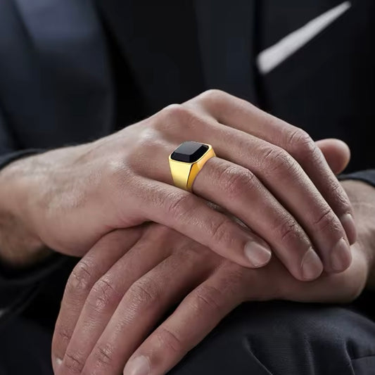 Stijlvolle zwart en metaal gouden herenring - Ideaal voor verlovingen, bruiloften en luxe modeaccessoires.