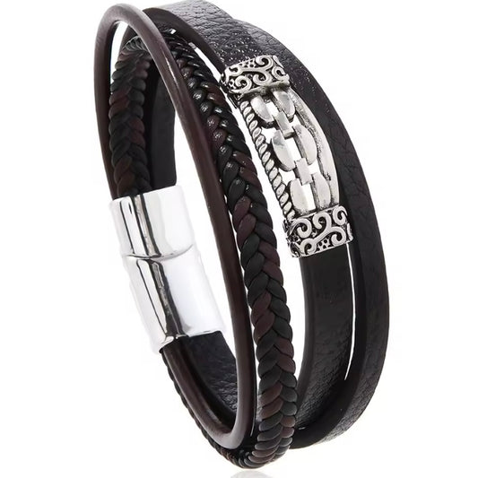 Meerlaags geweven PU-leren herenarmband, retro stijl