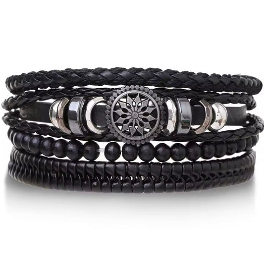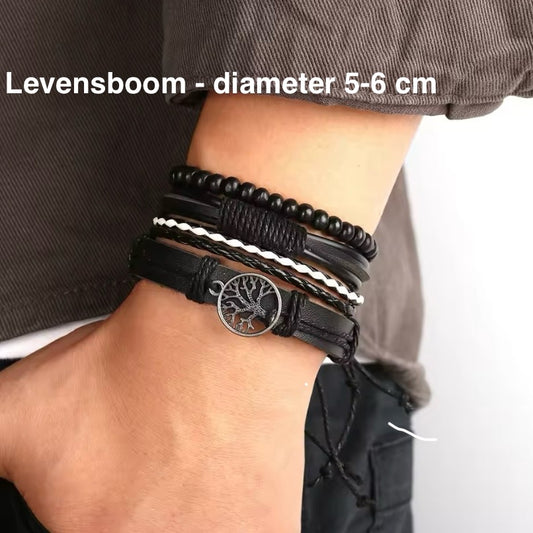 1+2 Gratis: 4 Stijlvolle Armbanden van Leer en Roestvrij Staal