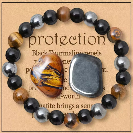 2 Stks/set Drievoudige Beschermingsarmband - Tijgeroog, Zwart Obsidiaan, Hematiet