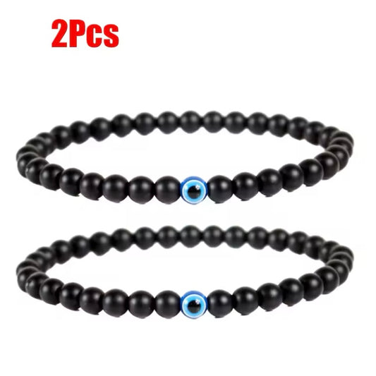 Zwarte Obsidiaan Armband met Blauwe Boze Ogen - 6mm Yoga Sieraden Cadeau