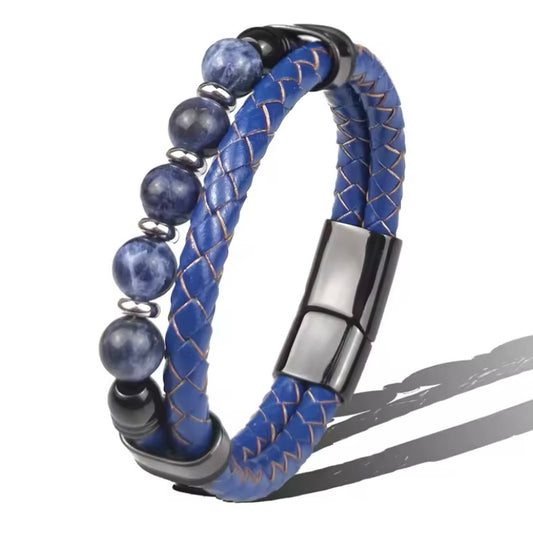 Feng Yue Armband met Natuursteen & Lederen Bedels (19-23 cm)