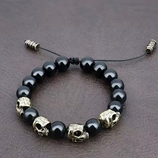 Stoere Vintage Agaat Schedel Armband - Handgemaakt
