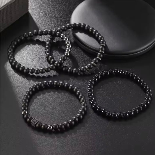 Unieke Mannen Armband Set â Zwarte Onyx & Hematiet Kralen, Healing Braclet met Luxe Zirkonia