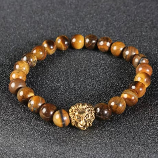 Elegante Tiger Eye Kralenarmbanden met Leeuwenbedels (18 cm)