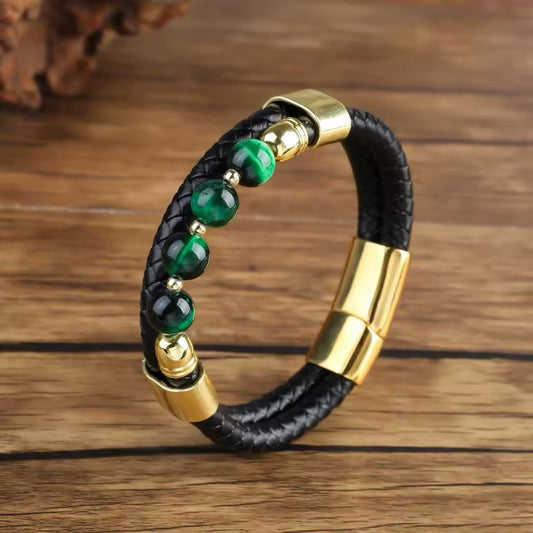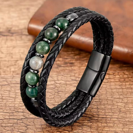 De 'Elementum' Armband - Stoere Natuursteen & Lederen Armband voor Mannen en Vrouwen met RVS Accenten