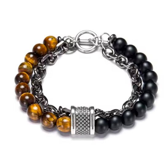 Schaaf & Stone™ Set van 2 Verstelbare Onyx Tijgeroog Armbanden
