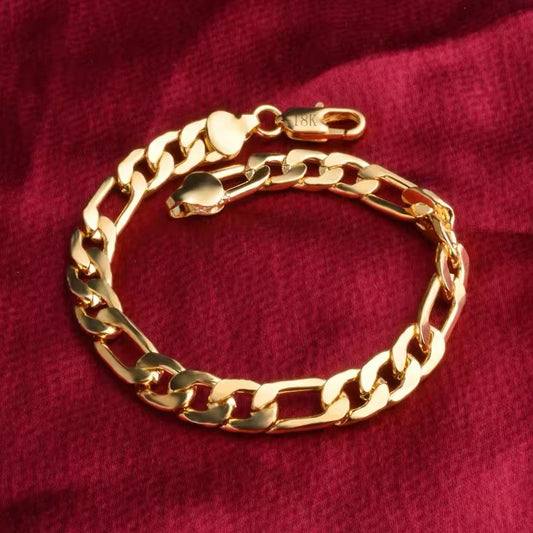 Goud/Zilver Kleur Full Side Figaro Ketting Armband 8mm