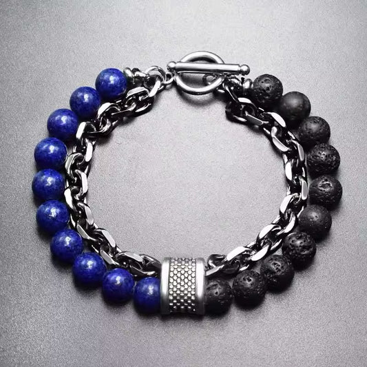 Blauw Natuurlijke Kwarts Armband Unisex - Roestvrij Stalen Sluiting, Tijgeroog Kralen