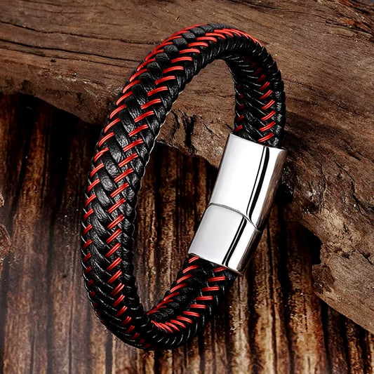 Eternal Bliss Armband Echt Blauw Lederen Gevlochten Armband Rvs Magnetische Sluiting Tijgeroog Kraal
