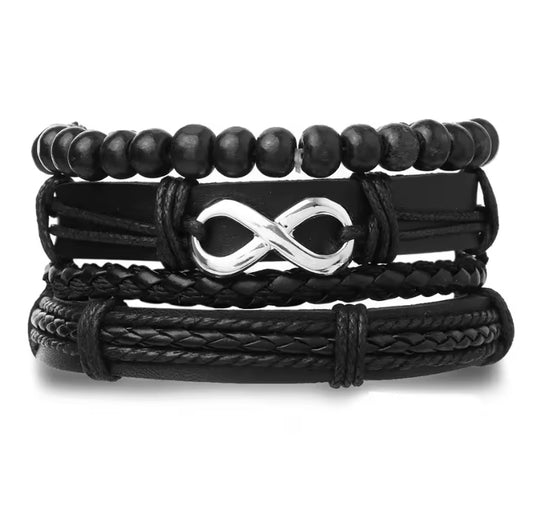 1+2 Gratis: 4 Stijlvolle Armbanden van Leer en Roestvrij Staal