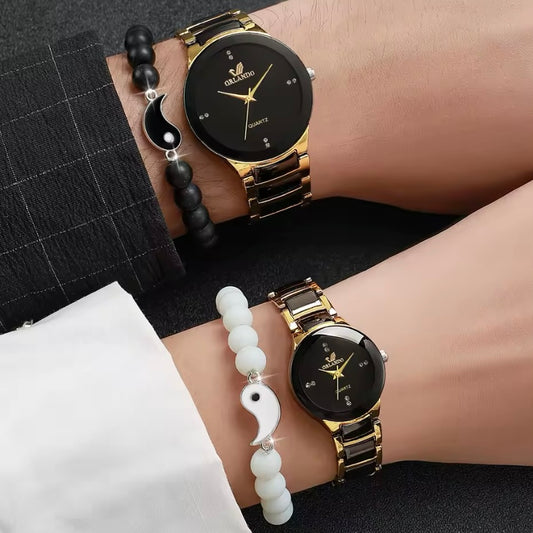 Dames & Heren Quartz Horloges met Gratis Yin Yang Kralenarmbanden