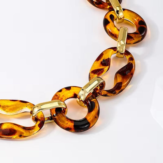 Amerikaanse Stijl Ketting Amber Luipaard Print Voor Vrouwen