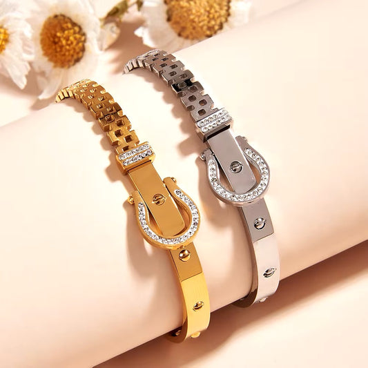 Hoefijzer Zirkoon Holle Titanium Stalen Veer Armband