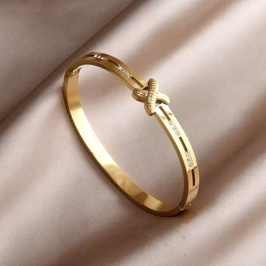 Elegante RVS Goudkleurige Knoop Oorbellen – Tijdloos Design voor 55+
