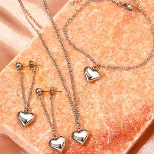 RVS Ketting Oorbel Armband Set | Kubieke Perzik Hart Hanger