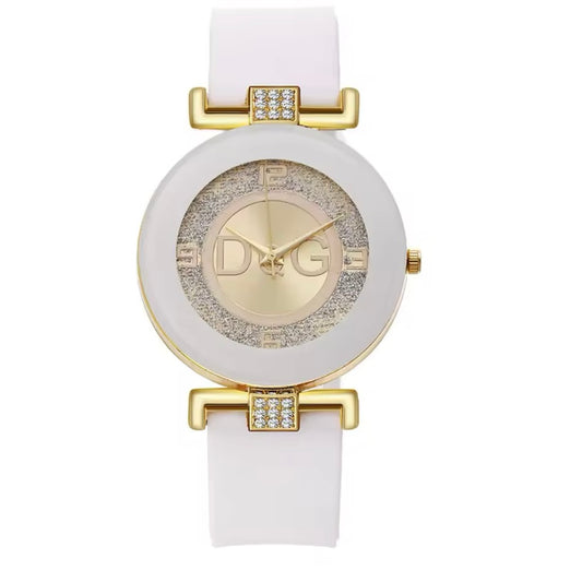 Dames Quartz Horloge - Siliconen Band - 41mm Strass Design - Luxe Merk
