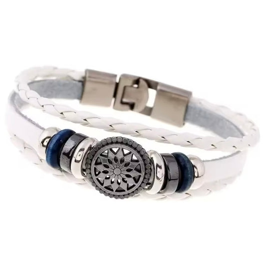 Gevlochten Lederen Multi-Layer Armband met Kompas | Gratis verzending