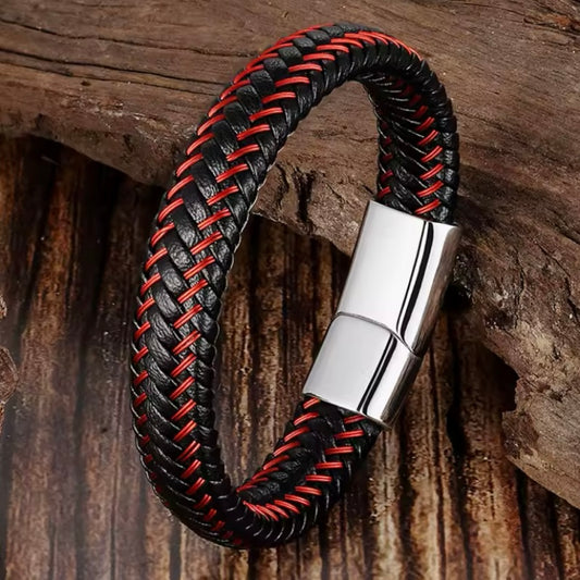Lederen Gevlochten Armband Voor Heren â Handgemaakt | RVS Magneetsluiting