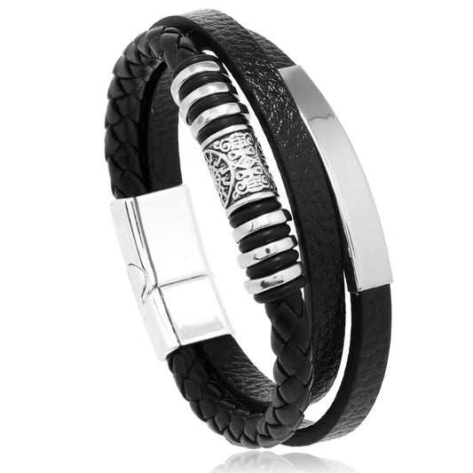 Trendy Lederen Armbanden Voor Mannen â RVS Armband 21CM | Meerlagig Gevlochten
