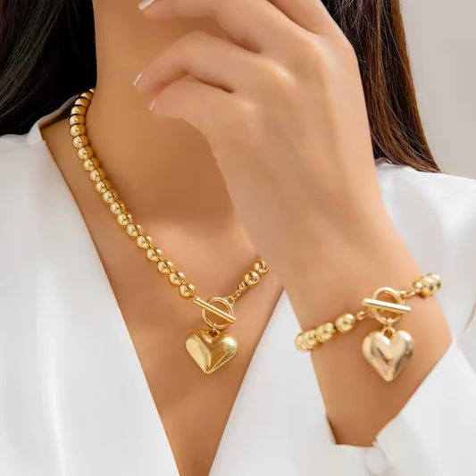 Creatieve Punk Big Love Heart Ot Gesp Hanger Choker Ketting