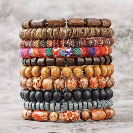 Afrikaanse etnische patroon Boheemse armbanden set, zigeunervrijheidssymbool, Nepalese surferarmbanden