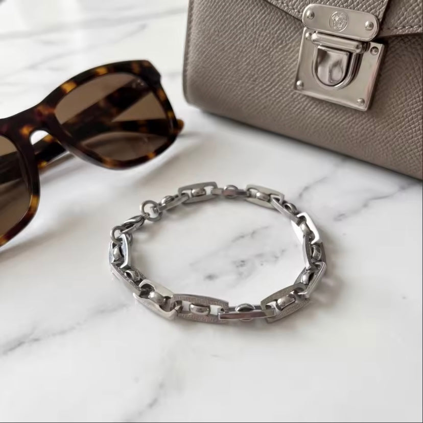 Nieuwe gelimiteerde custom editie zilverkleurige geluksarmband uit de Brother®‑collectie — een stijlvolle unisex schakelarmband van hoogwaardig roestvrij staal.