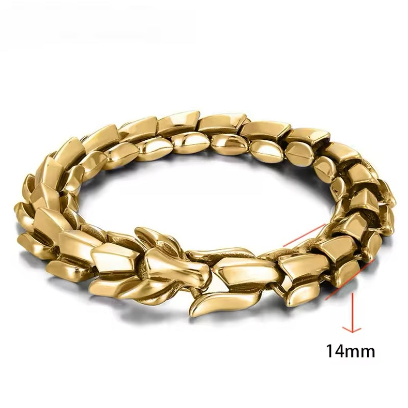 Ontdek de krachtige en stoere uitstraling van de Dominante Retro Kiel Draak Armband, gemaakt van hoogwaardig staal.