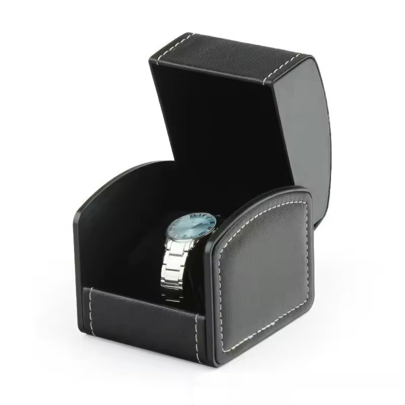 PU lederen horlogedoos met flip‑cover en zacht kussen.