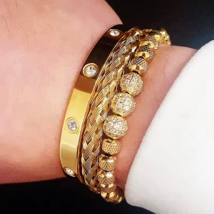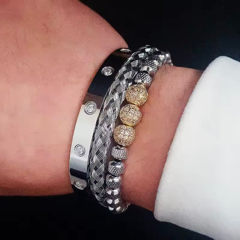 Royal Sparkle® 3-delig Set Luxe 8Mm Cz Ball Charme Man Armband Kristal Rvs Vaderdag