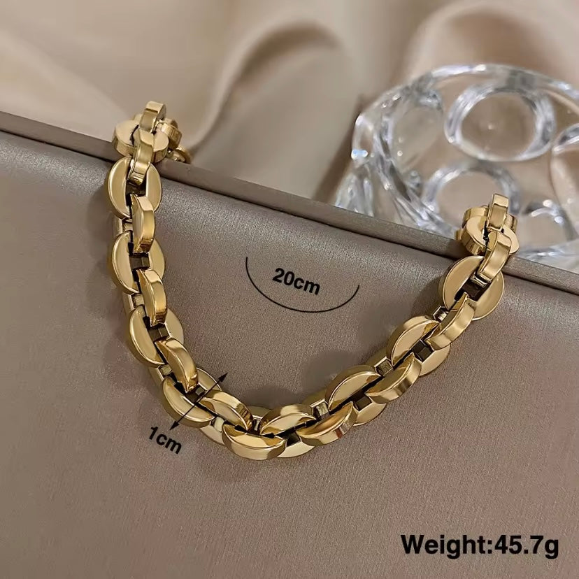 Maak een statement met deze chunky vergulde Cubaanse ketting armband! Een perfecte mix van mode, robuustheid en stijl, geschikt voor mannen en vrouwen die een opvallend en trendy accessoire willen dragen.