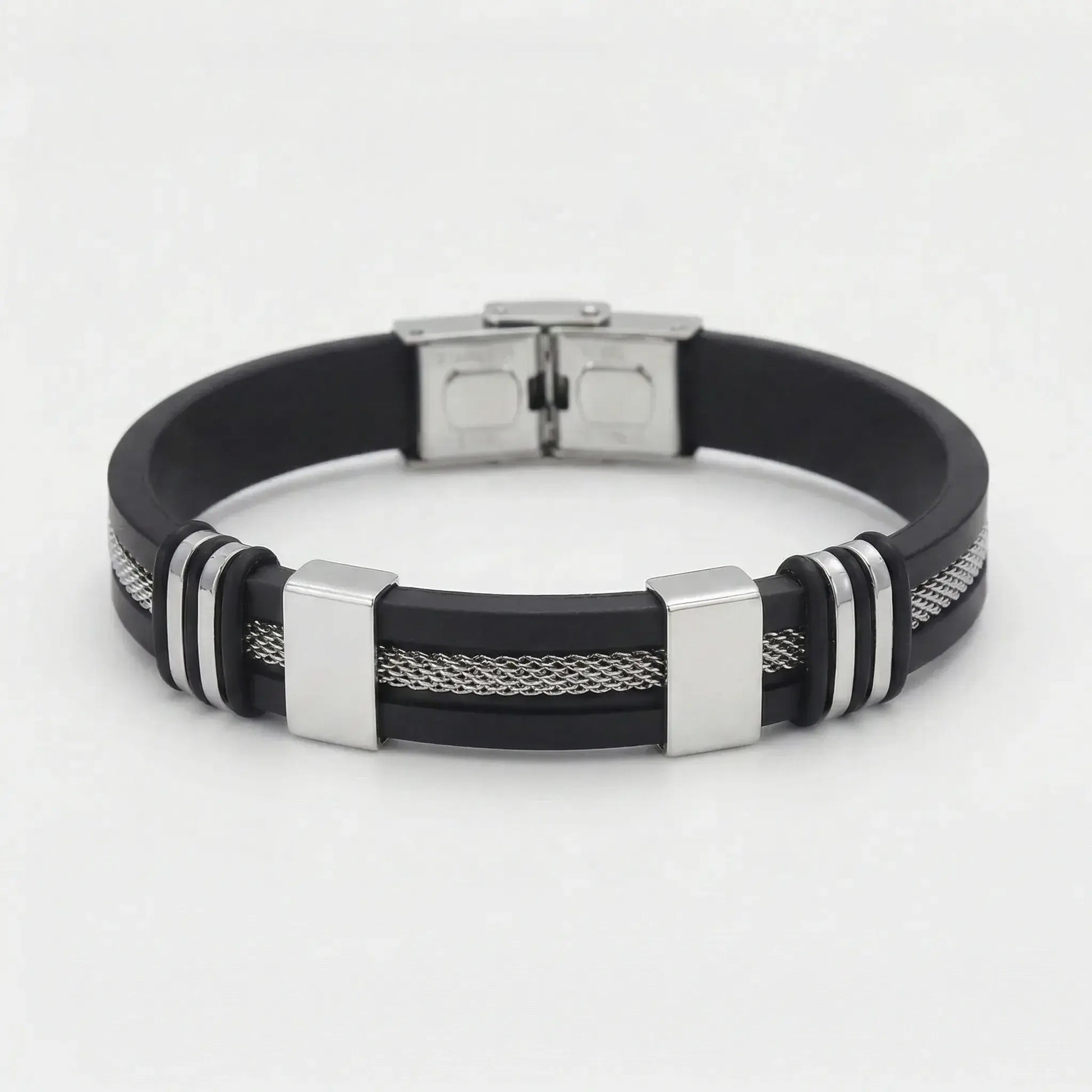 Deze Chain S7™ armband is uniek dankzij het gebruik van roestvrij staal en een opvallend zwart gegroefd design.