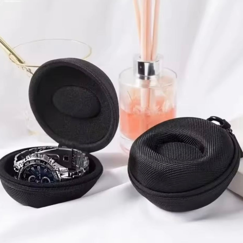 Waterdichte horloge reisetui met ritssluiting voor smartwatches en klassieke horloges. Compact, stevig en ideaal voor reizen of veilige opslag.