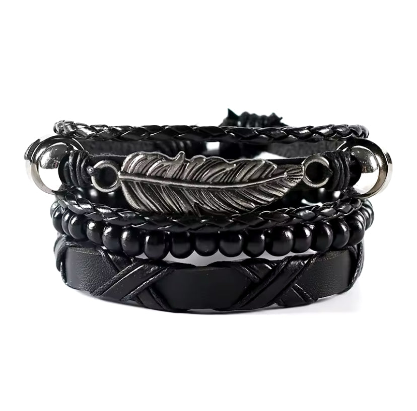 4x Gevlochten Lederen Armbanden - Vintage Veer