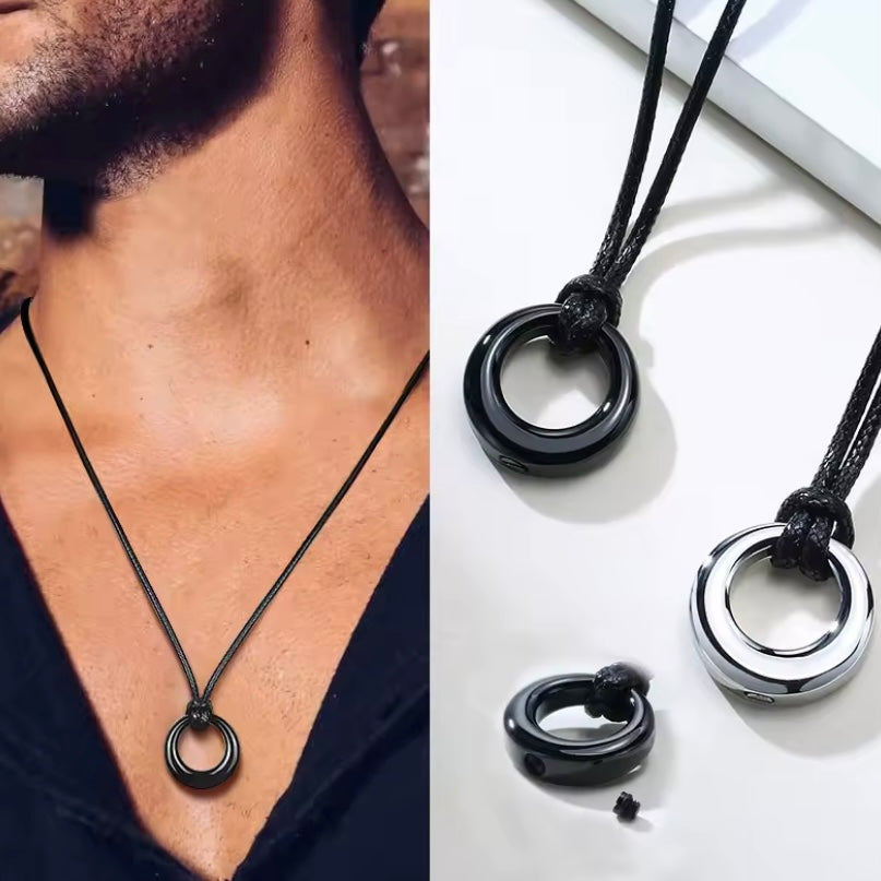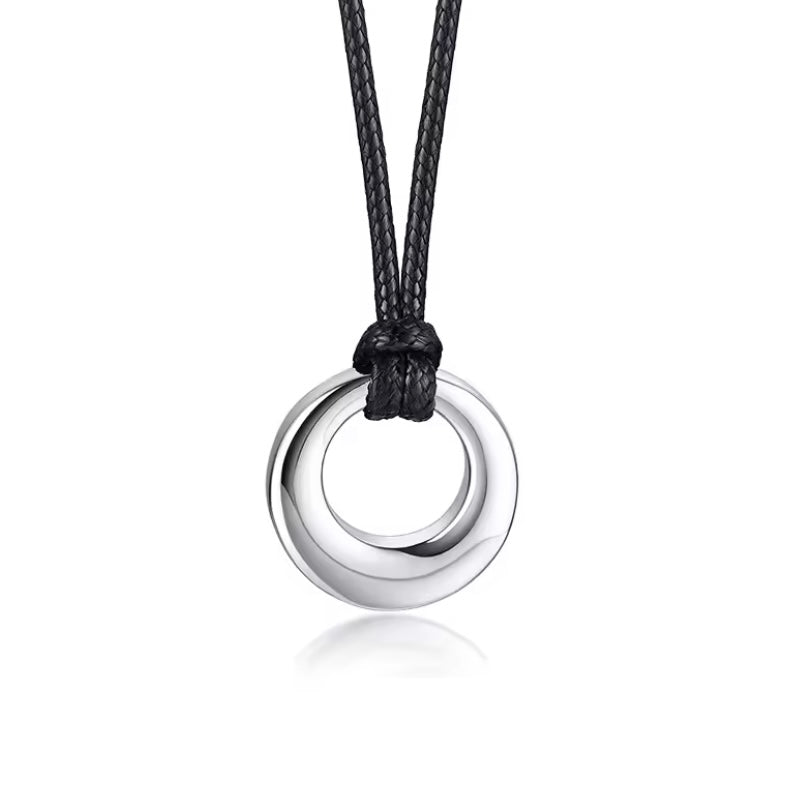 De hanger wordt geleverd aan een zwart satijnen koord van 60 cm, comfortabel, stijlvol en geschikt voor dagelijks gebruik.