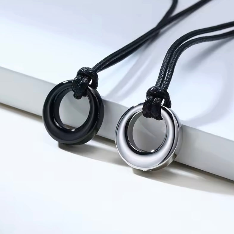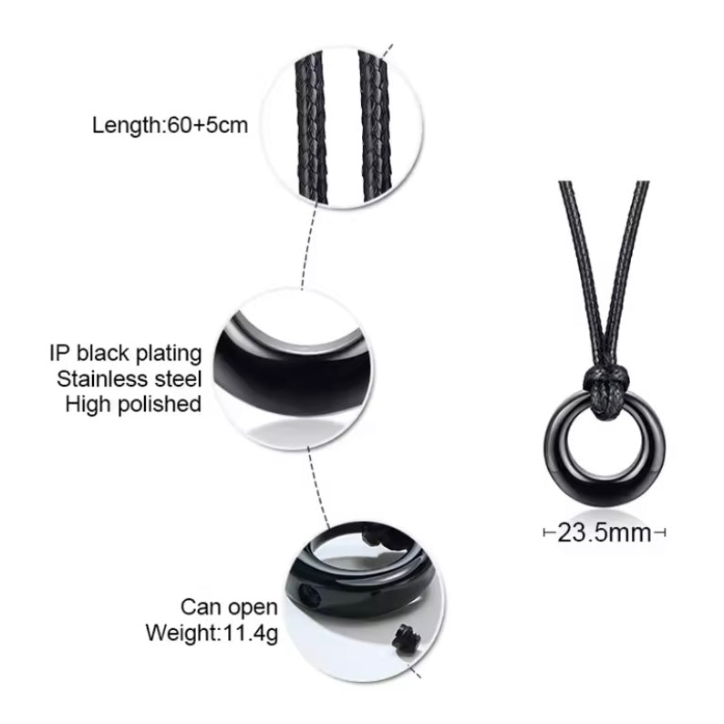 De hanger wordt geleverd aan een zwart satijnen koord van 60 cm, comfortabel, stijlvol en geschikt voor dagelijks gebruik. Perfect als symbool van liefde, karma of als persoonlijk aandenken.
